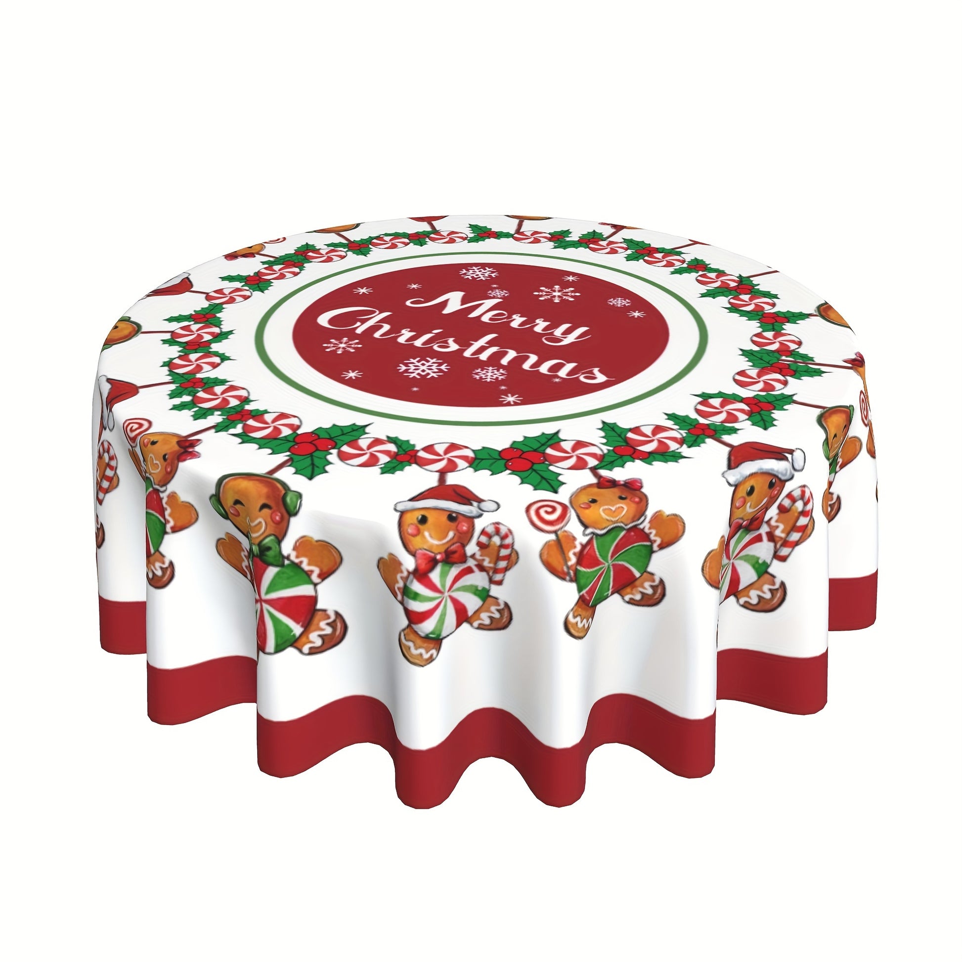 1pc Christmas Polyester Tablecloth - Lively Gingerbread Man Candy Pattern - Festive Decor for Home & Events - Durable Fabric, Instantly Adds Holiday Cheer - Perfect Christmas Gift